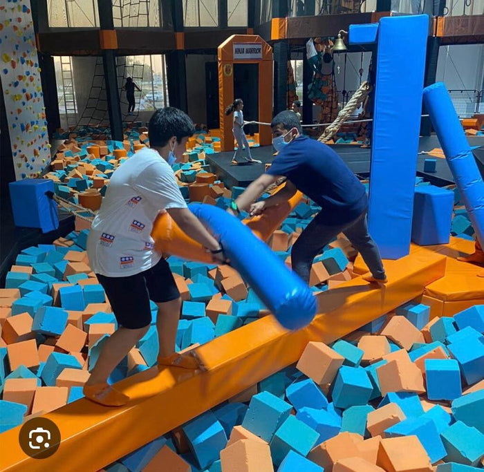 In una piscina di più di 2000 cubi di gommapiuma Verdi e gialli, vi è un asse di attraversamento dove vi si può anche sfidare muniti di cilindro gommoso gigante, impugnato all’altezza degli avambracci per cercare di far cadere il proprio avversario che giunge in senso contrario con ‘mazzate gommose’ sui fianchi dell’avversario per fargli perdere l’equilibrio.